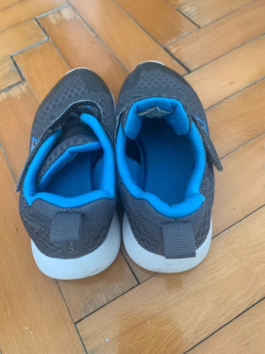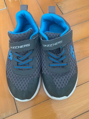 Gri renkli, baskılı desenli Skechers erkek çocuk spor ayakkabısı, cırt cırtlı ve kauçuk tabanlıdır, sokak stiline uygundur.