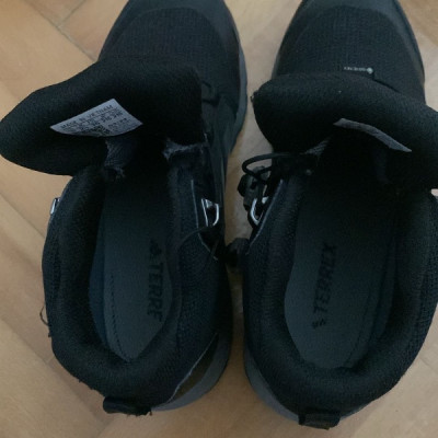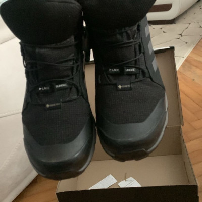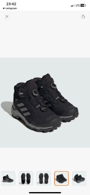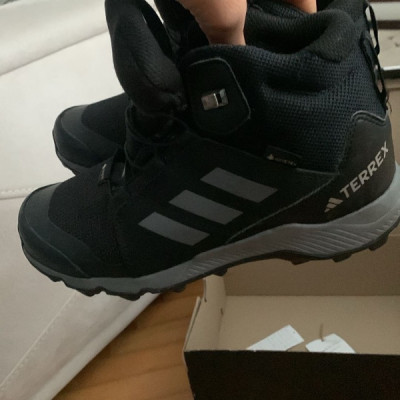 Siyah, bağcıklı, kauçuk malzemeden yapılmış, gri baskılı desenli erkek çocuk botu